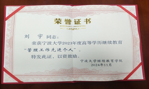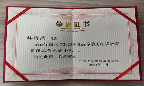 为加强高等学历继续教育校外教学点的建设与管理,规范校外教学点的合作办学行为,提高办学质量,促进高等学历继续教育健康有序发展。宁波大学继续教育学院在2024年6月-7月对高等学历继续教育校外教学点进行了新一轮的全面检查评估。我校在本轮教学点评估中荣获优秀,同时我校副校长刘宇和副校长林清燕均被评为2023年度教学点管理工作先进个人。